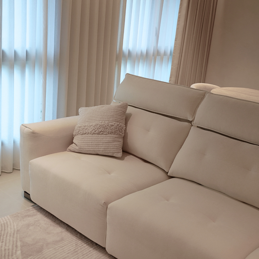 This electric extendable sofa, dressed in premium bouclé, adds a layer of softness that feels as good as it looks. Its remote-controlled extension makes settling in feel instinctive and effortless. With its blend of cozy texture and modern function, it’s the statement piece you’ll love living with.