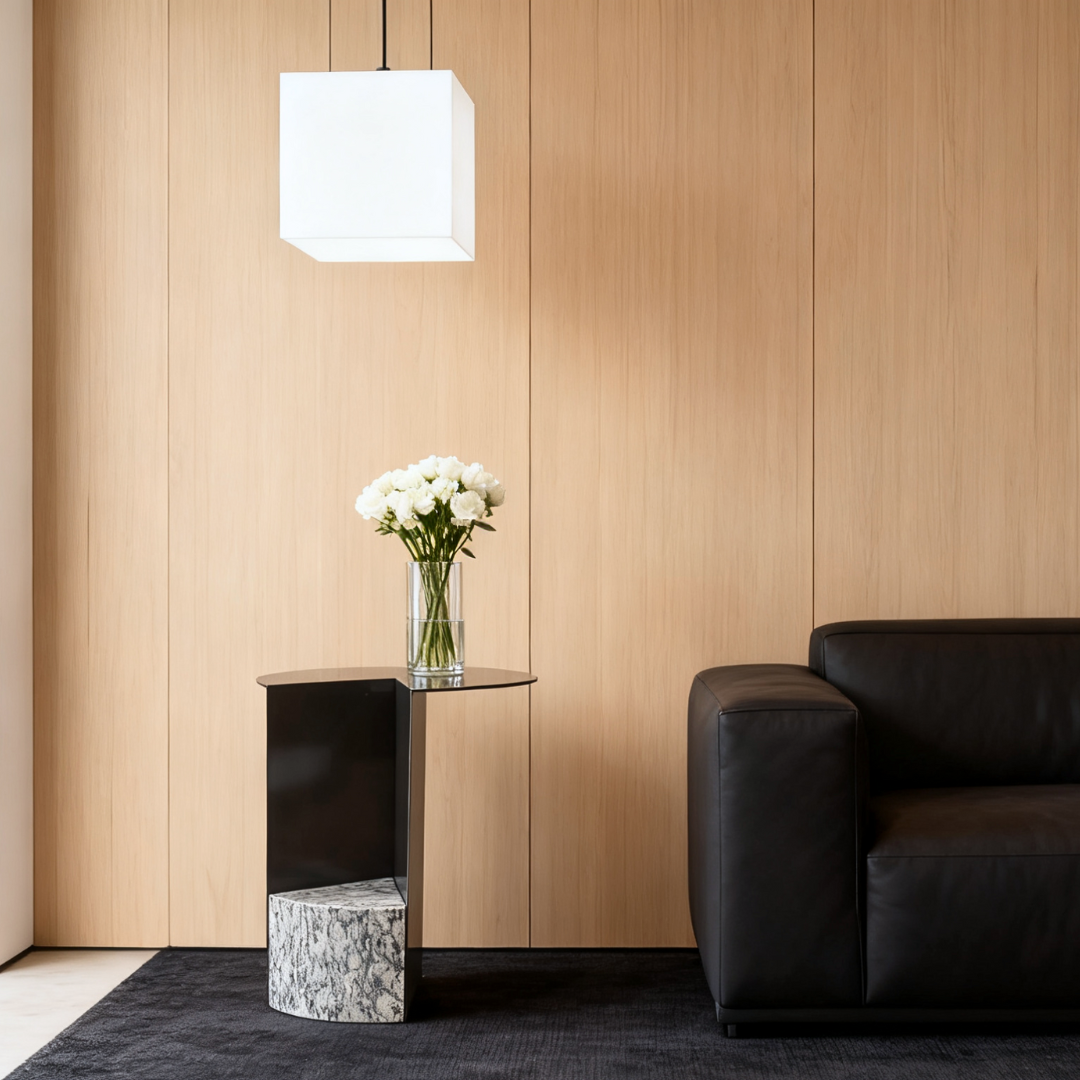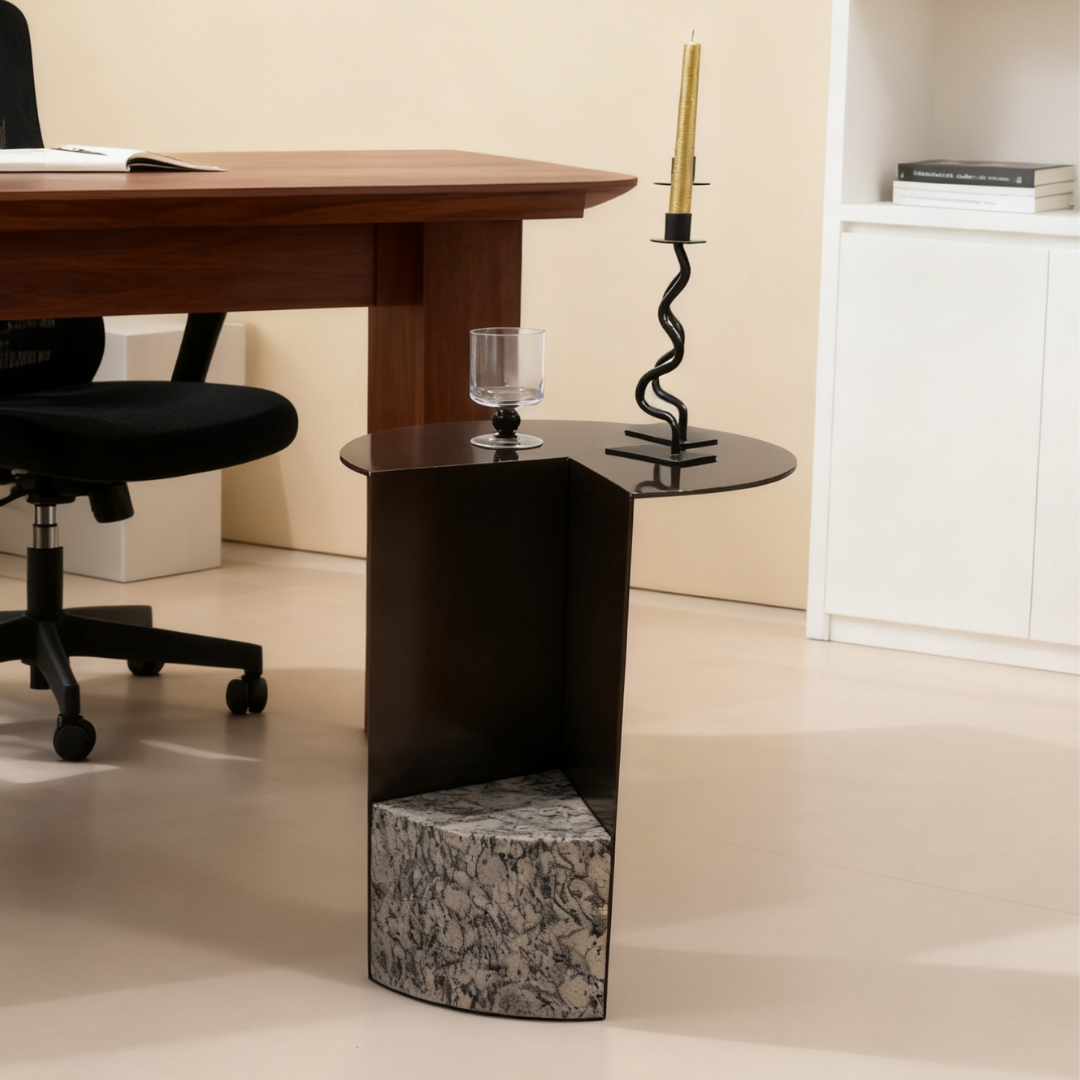 Elevate your space with Liam, a unique side table, where a sleek metal structure meets a solid marble base. Its striking geometric design makes it both functional and a statement piece. Perfect for adding a touch of modern elegance to any corner of your home.