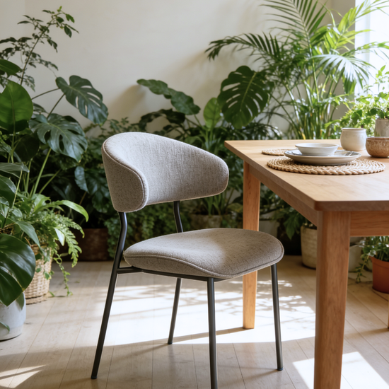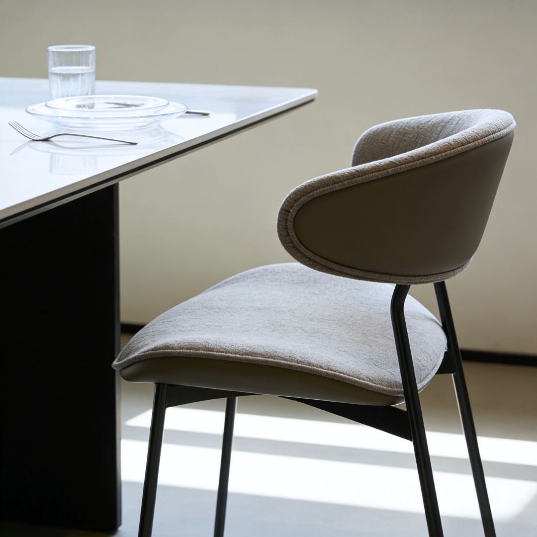 This piece mixes cozy designer chenille on the inside with smooth vegan leather on the outside, giving you the best of comfort and style in one. The high-resilience foam and soft fibre padding make it extra comfy, holding its shape even with daily use. Brushed black titanium stainless steel legs add a sleek, modern touch that’s built to last. A simple, stylish blend of textures designed for real everyday living.