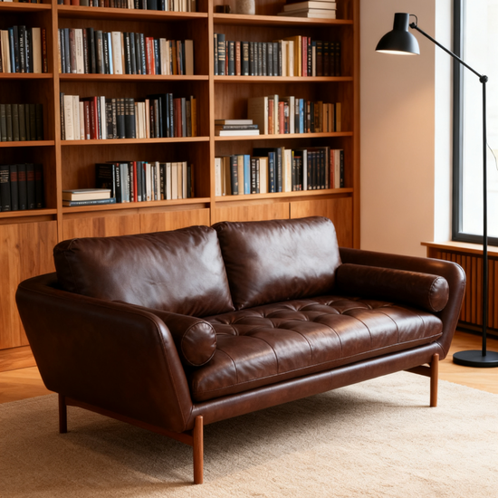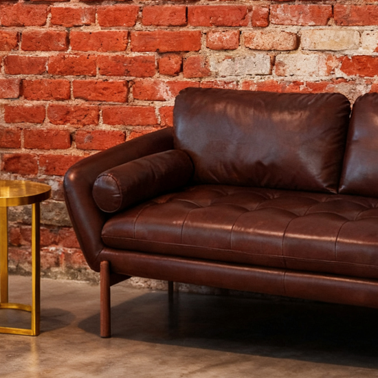 Royce leather sofa infused with rich hues of dark rum, the finest leather and a masterpiece sofa that feels like a moment of pure luxury.