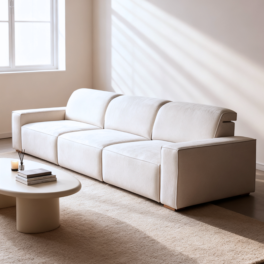 Minimal yet inviting, Sol extendable sofa turns understated design into everyday luxury. It's smooth block-like cushions and gentle proportions evoke a quiet, modern softness. Controlled with a single remote, it transforms at the touch of a button for instant comfort. Style, function, and ease, all in one elegant form.